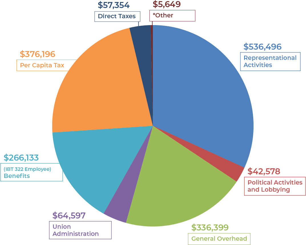 The chart below breaks down how local 322 spent $1,685,402, including: